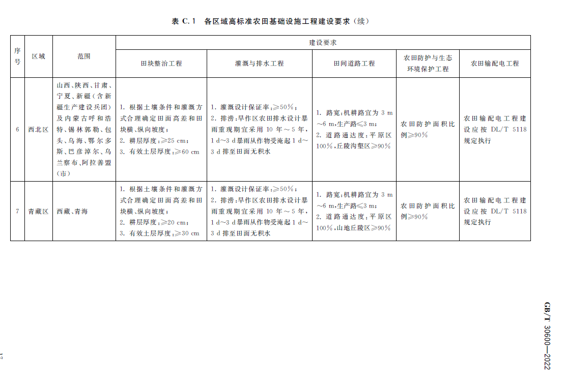 依据《高标准农田建设 通则》GB/T 30600-2022: