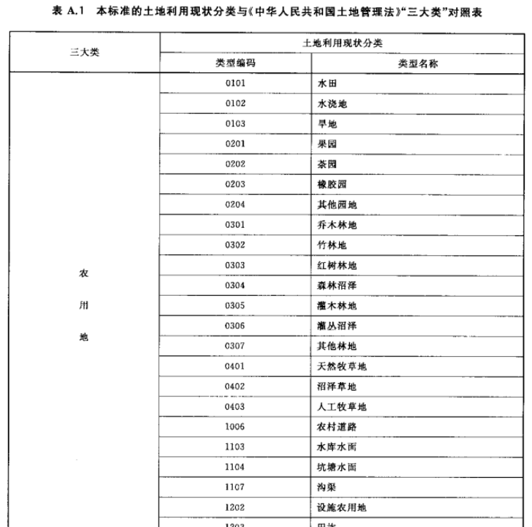 结合《土地利用现状分类》GB/T 21010-2017,附录A.1: