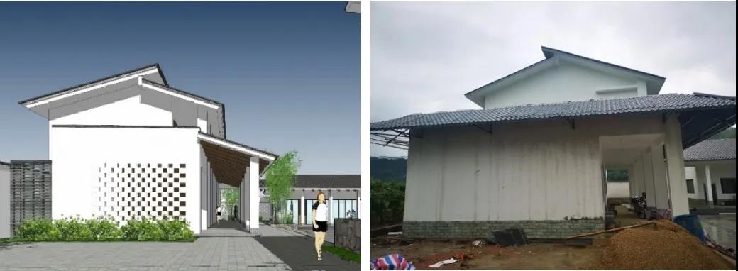 规划设计师方案图纸与乡村工程队施工实景对比