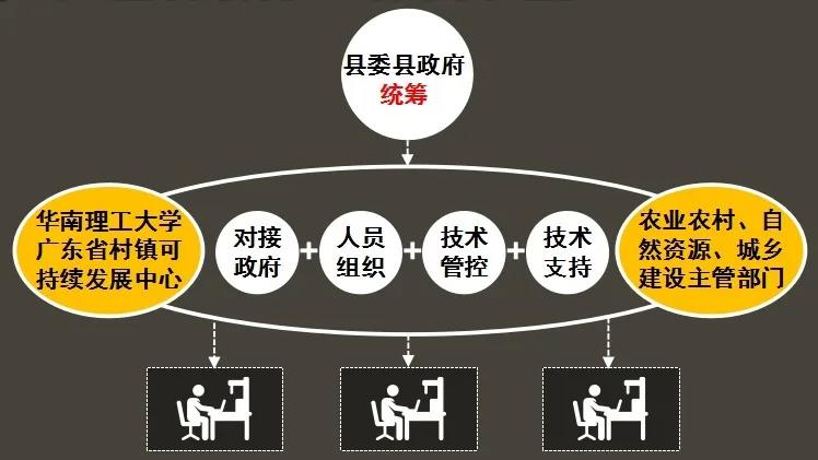 这是指整个项目推进的工作组织模式,即整县统筹,以规划为引领,形成项目推进、资金使用和行动流程三个一体化的组织模式。