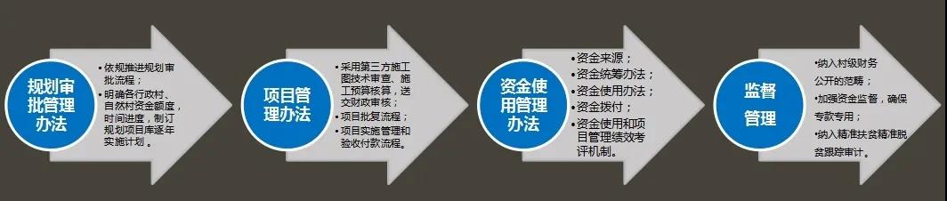 通过协助地方政府,建立起一套适应当地的乡村建设管理制度,如“一体化项目管理及资金使用办法”,明确规划审批、项目管理、资金使用和监督管理等方面规则,以促进各级各类资金的统筹使用。