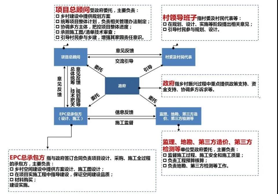 实践过程中,一体化的工作模式也在不断得到提升和改进。后来形成了2.0版本,其中最为重要的是形成了一个业主单位-项目总顾问团队-EPC总承包方-第三方专业监管机构的权责矩阵。这一点在当前乡村建设有多方资金投入、多种类型建设项目共同推进的情况下,是非常重要的。