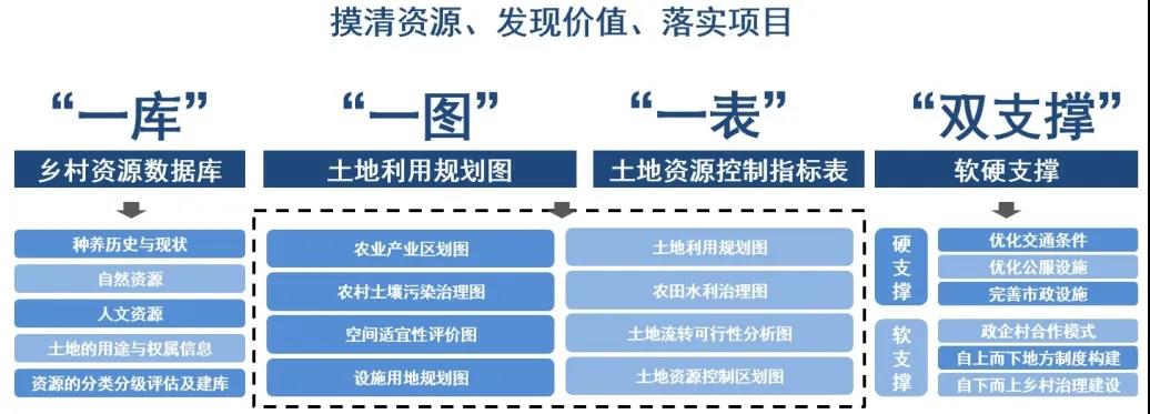 乡村振兴专项规划的内容,可以概括为“一库”、“一图”、“一表”和“双支撑”。