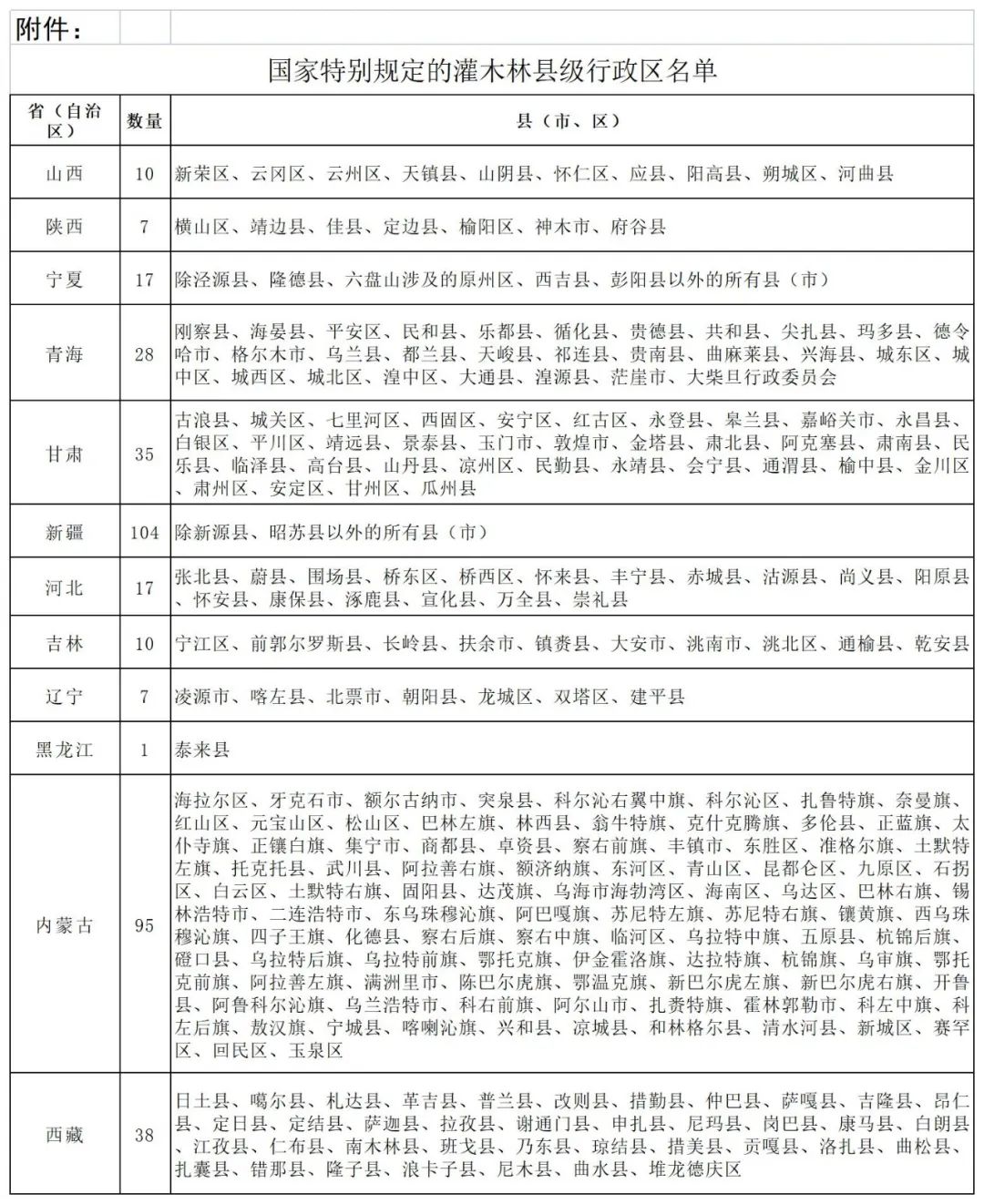 国家特别规定的灌木林,是指分布在年均降水量400毫米以下的极干旱、干旱、半干旱地区,不包括乔木分布(垂直分布)上限以上地域的灌木林。