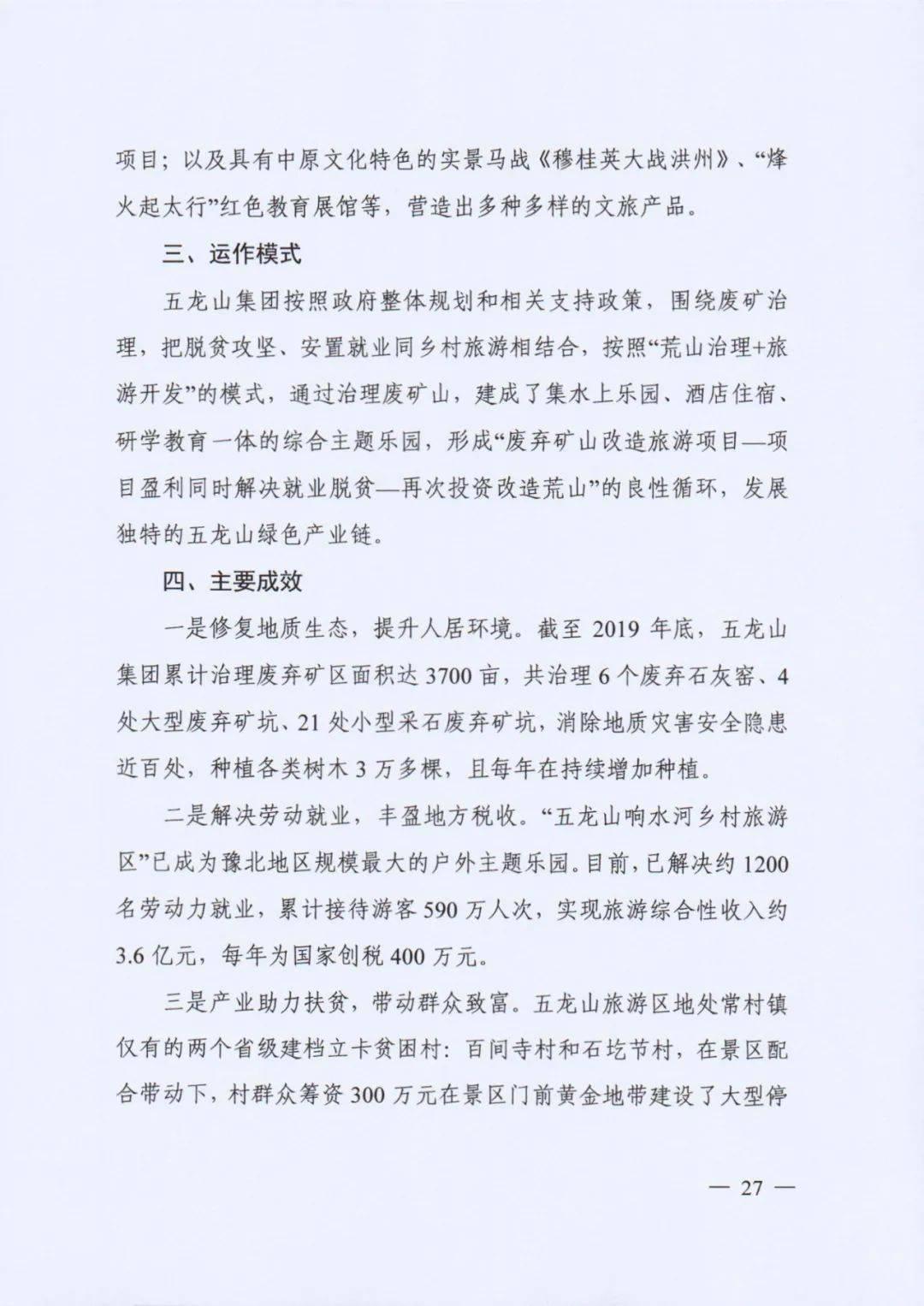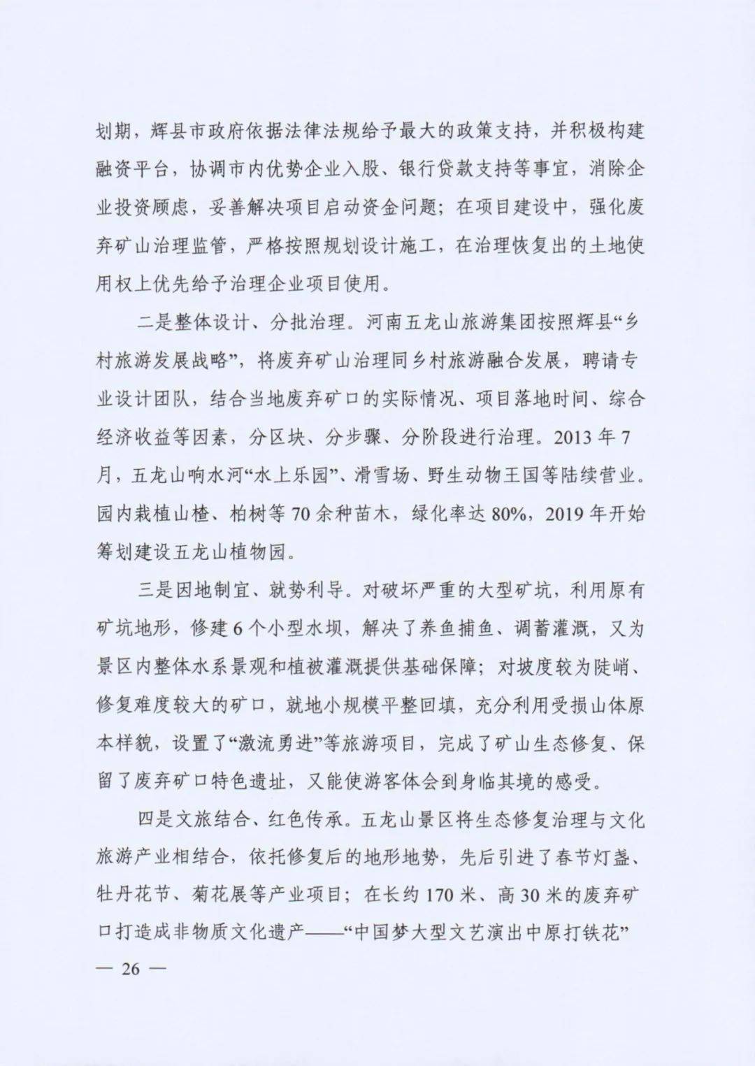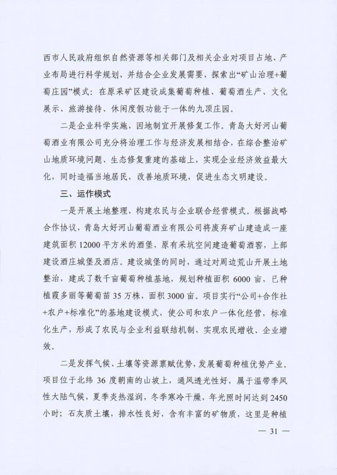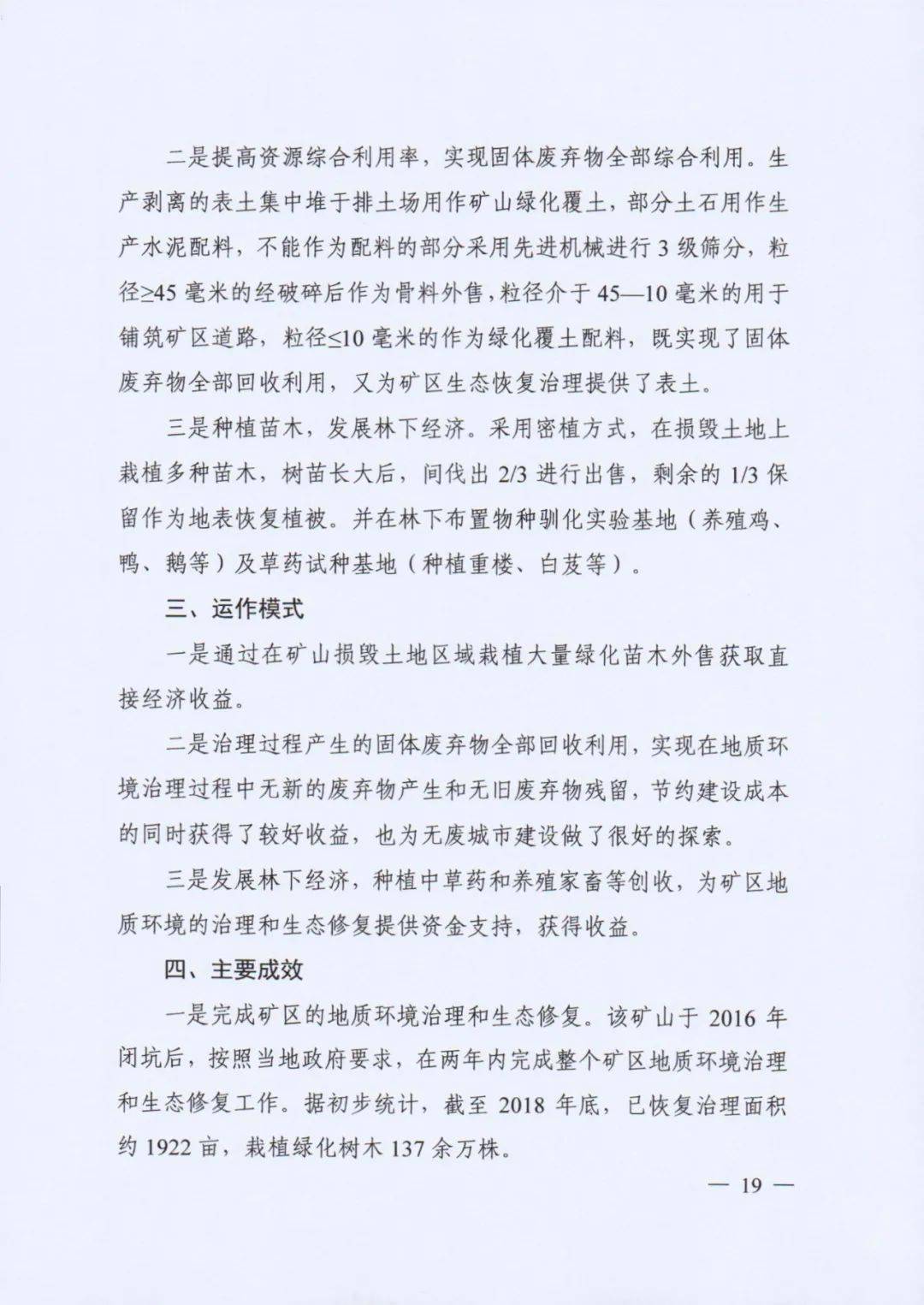 2019年以来,陆续出台了《自然资源部关于探索利用市场化方式推进矿山生态修复的意见》(自然资规〔2019〕6号)、《自然资源部关于开展全域土地综合整治试点工作的通知》(自然资发〔2019〕194号)等政策文件。在实践中,各地积极探索市场化运作、科学性修复、开发式治理,摸索出一些社会资本参与生态保护修复的新模式、新路径、新做法,涌现出一批具有推广和借鉴作用的典型案例。近日,自然资源部印发《社会资本参与国土空间生态修复案例(第一批)》(以下简称《案例》)。