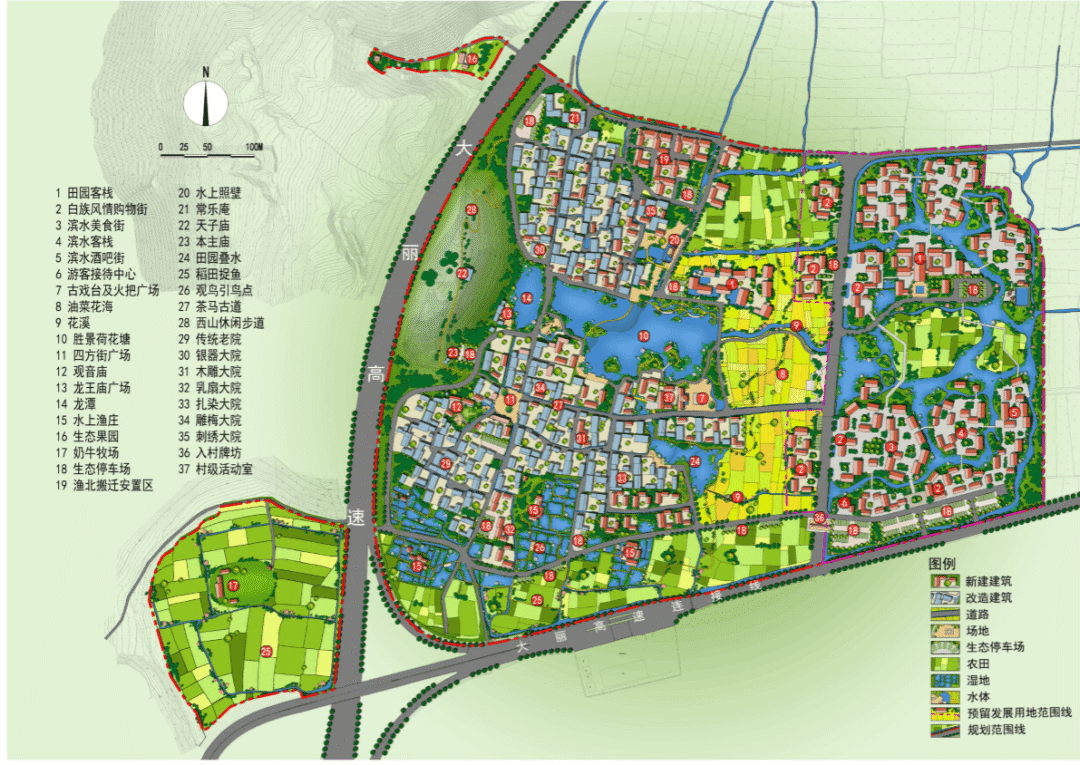 区别于诺邓、喜洲、双廊、沙溪等优秀白族聚落,重点发展高原水乡文化游赏、白族风情体验、温泉养生度假、田园风光感受等特色化项目,形成差异化发展。