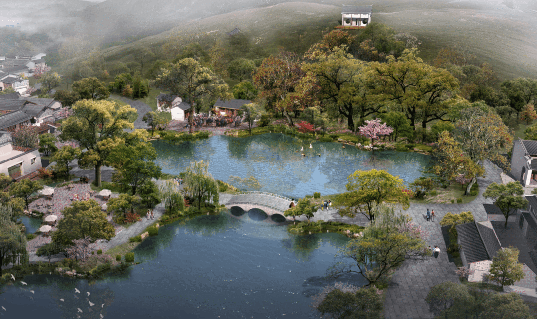 3.尊重村落原有格局,在渔潭村提质改造过程中采用有机更新建设思路,通过修复、提升、演绎等手法,建设“山、水、田、村”有机融合的美丽村庄。