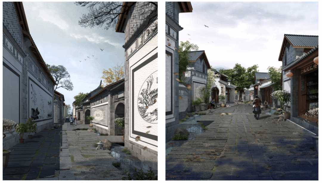 故乡情——保留、修复渔潭村记忆中的特定符号,包括白族大院、寺庙、牌坊、照壁、桥梁、庭院铺装等,留住渔潭村的专属记忆。