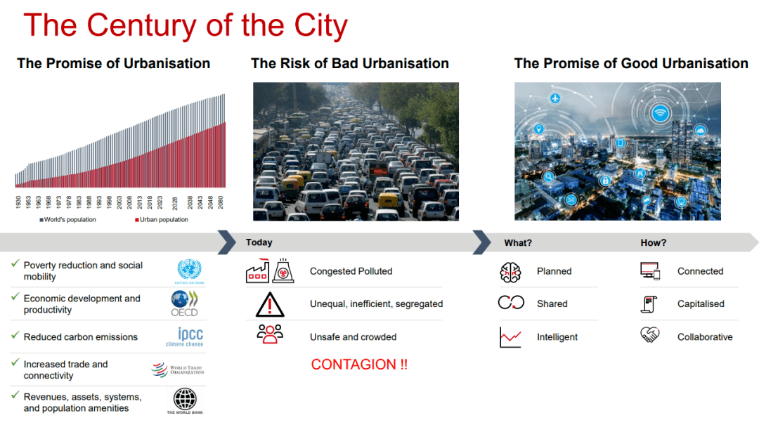 许多研究表明,城市有助于减少贫困、提高社会的流动性;城市有利于提高生产效率,它们使工人、企业和资本更具生产力;从人均投入的角度来看,城市的环境效益更高;城市可以增加贸易和连通性,锚定交易的廊道;城市能够支撑更多的人口和住区,并提供相应的服务。由此可见,城市对我们有诸多好处。