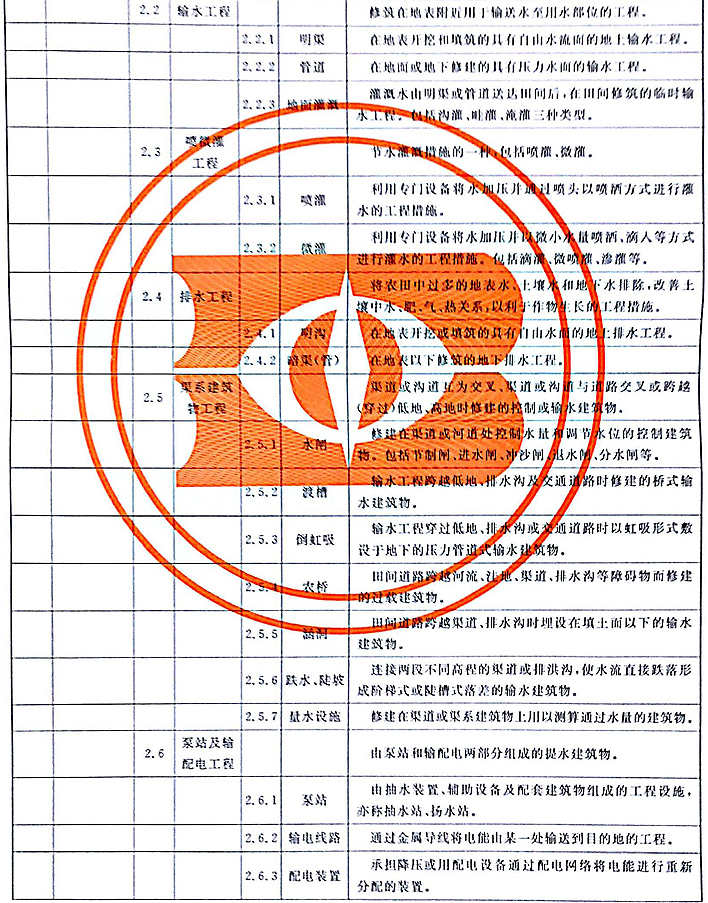 3.1 灌溉与排水工程指为防治农田旱、涝、渍和盐碱等灾害而采取的各种措施。包括水源工程、输水工程、喷微灌工程、排水工程、渠系建筑物工程、泵站及输配电工程。