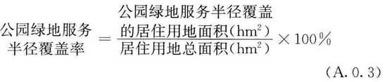 A.0.3 公园绿地500m服务半径覆盖居住用地的比例可按下式计算: