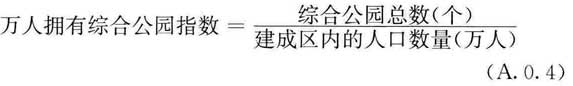A.0.4 万人拥有综合公园指数计算方法应按下式计算: