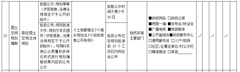 依据2022年4月6日,自然资源部办公厅《自然资源领域基层政务公开标准指引》要求,公示方式(黑色范围内至少选择一项):